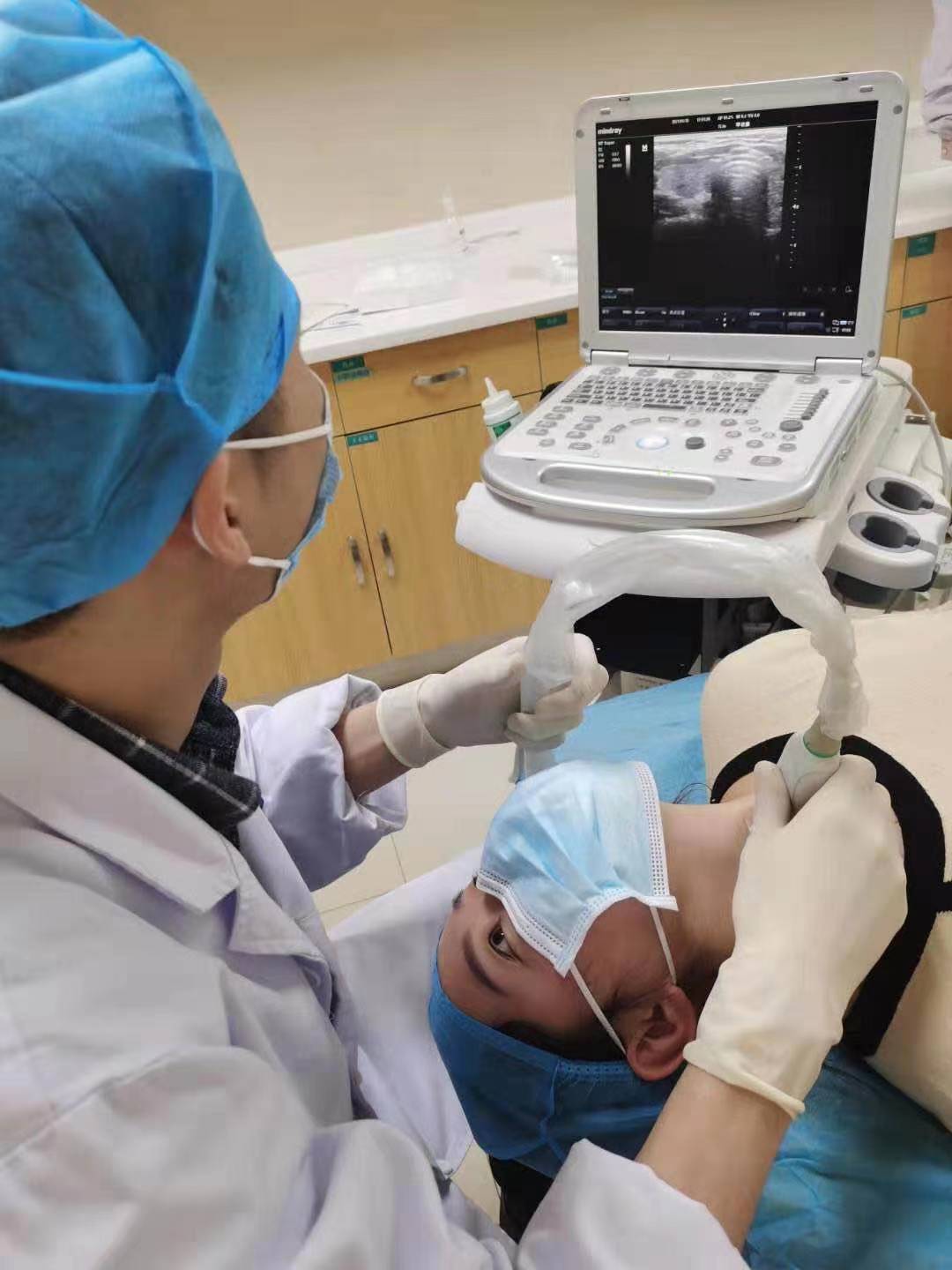 图:江夏区第一人民医院(协和江南医院)医生在为患者做甲状腺彩超