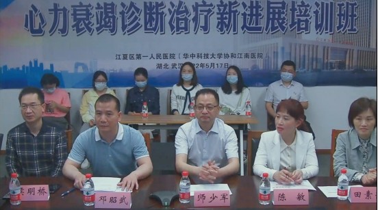 5月17日中午,由江夏区第一人民医院(协和江南医院)主办的“心力衰竭诊治新进展专题培训班”在五楼远程会诊中心顺利召开,培训采用“线上+线下”方式进行,华中科技大学附属协和医院心血管内科主任程翔教授、心血管内科医疗主任陈志坚教授、袁璟教授应邀出席线上培训。参会人员按疫情防控要求入场,并全程佩戴口罩。培训会由我院心血管内科主任邓昭武主持。