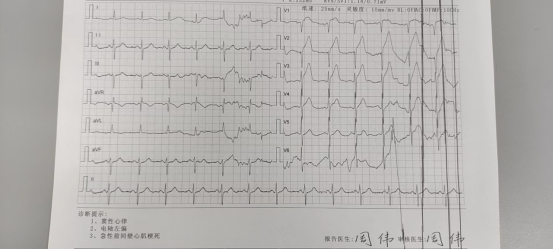 22日中午,家住江夏纸坊的张爹爹,突然胸口疼痛,大汗淋漓,呼吸困难,家人拨打120将其送往江夏区第一人民医院(协和江南医院);急查心电图,提示“急性前间壁心肌梗死”;胸痛救治“绿色通道”开启,一场分秒必争“生死竞技”也随之展开。