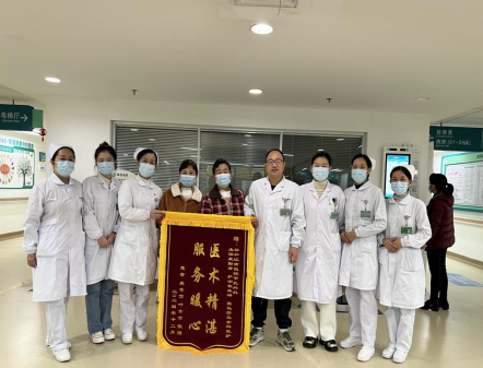 12.20日上午,周医生为两位患者拆线,伤口愈合情况很好,两位女士很满意,表示所有担心、焦虑的问题都解决了,随即为其办理出院,走之前,特地去到医生办公室找到王主任,一定要送上一面锦旗,感谢甲乳外科医护团队住院期间精心的治疗以及无微不至的关怀,住院期间感受最深的就是医生护士的工作并不是冰冷、按部就班的流水线工作,而是带着细心、耐心、责任心的做好每一件小事,称赞我们为有温度的医护工作者。一面小小的锦旗,廖廖几字的夸赞,是期望是动力,是义务也是责任,我们将持续做好甲乳外科的诊治工作,全心全意为患者提供优质的医疗、护理服务。