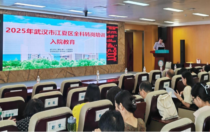 8月29日上午,江夏区第一人民医院(协和江南医院)在五楼学术报告厅成功举办了“2025年江夏区全科医生转岗培训入院教育”活动。此次培训吸引了54名学员踊跃参与,更为引人注目的是,全新打造的电子学习手册系统也于今日正式上线启用,标志着江夏区全科医生转岗培训管理正式迈入数字化、精细化的发展阶段。