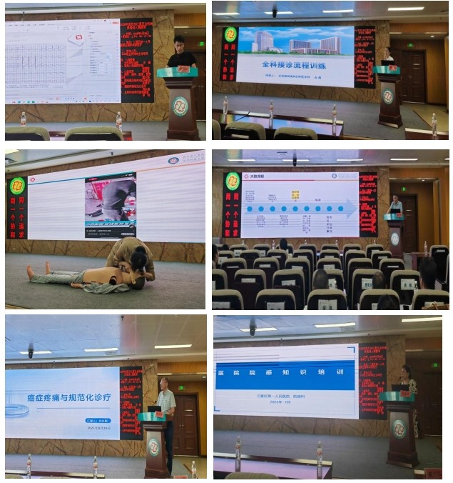 随后,胃肠外科戴少华主任介绍了常用穿刺技术,从穿刺部位的选择、操作手法到注意事项,都进行了细致入微的讲解,为学员们在实际临床工作中顺利开展穿刺操作提供了全面指导。院感科吴春平主管护师着重强调了院感与职业防护的重要性,通过生动的案例和详实的数据,让学员们深刻认识到院感防控和自身职业防护的必要性,增强他们在工作中的安全意识和责任感。门诊办公室刘永刚医师则对癌痛规范化诊疗作了深入讲解,使学员们对癌痛的评估、治疗原则和常用药物有了更清晰的认识。