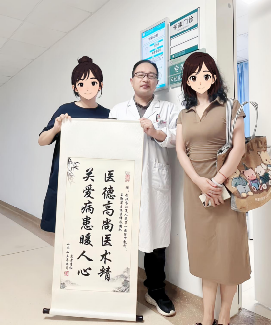“事实证明,我的选择太正确了!今天既是过来复诊,更是‘追加点赞’的!”11日上午,李女士再次来到了江夏,找到我院甲乳外科,并将一幅精心准备的写着“医德高尚医术精,关爱病患暖人心”字画,亲自交到了王勤甫副主任医师手中····李女士介绍,当时非常焦虑“像热锅上的蚂蚁”,起初在市内多家大医院都咨询过,也是朋友推荐才来到江夏区第一人民医院(协和江南医院);与医生深入沟通时,发现王勤甫副主任医师不仅平易近人,分析病情、讲解治疗方案都很专业、很亲切,让她倍感安心,于是选择了在这里手术治疗。“住院期间,医护团队对我关怀备至,让我在这里感受到了家一般的温暖!”