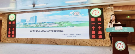 江夏区第一人民医院(协和江南医院)护理部总护士长吴红霞以《老年冠心病的护理新进展》为题,从老年冠心病的研究背景、常见功能障碍、综合评估、全周期康复策略等方面阐述老年冠心病的护理新进展,为老年冠心病患者提供了从医院—社区—居家三阶段的科学精准的康复指导。