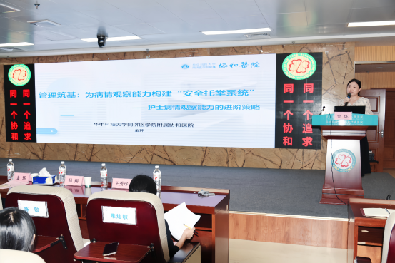 华中科技大学同济医学院附属协和医院护理部总护士长金环在《为病情观察能力构建安全托举系统》的专题报告中,详细讲述了标准化流程、风险评估工具、智能信息系统在全方位的病情监测体系中的应用。
