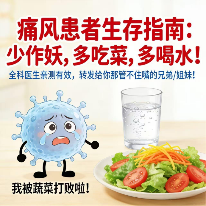 “医生,我昨晚吃了顿火锅,半夜脚疼得像被刀割,是不是痛风又犯了?”——每年冬天和夏天,门诊总能遇到被痛风“偷袭”的患者,疼得龇牙咧嘴,后悔当初没管住嘴。今天咱就用“段子手”模式,聊聊痛风这事儿,看完保证你:吃明白、喝清楚、尿酸稳!