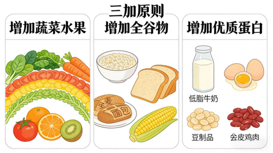 2. 加全谷:用糙米、燕麦、玉米、小米代替部分白米白面,增加膳食纤维,延缓血糖血脂上升。
