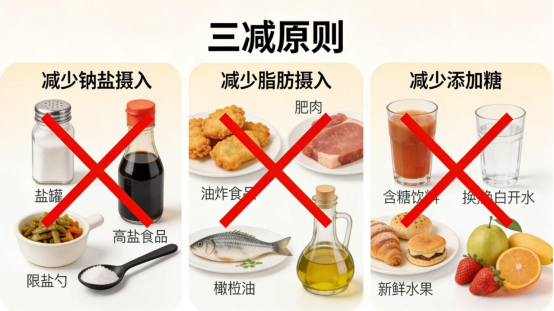 减糖:少喝甜饮料、少吃糕点,用新鲜水果代替零食,控制体重(肥胖是高血压的“帮凶”)。