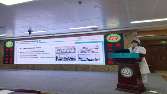会上,内科总护士长吴红霞以“目标导航,数据赋能”为主题,系统回顾了2025年护理质量工作,围绕质量提升、专项攻坚与专科能力建设等方面进行分析,并介绍了新一年质量管理体系的构建规划。外科总护士长杨翔从分层培训、专科培养、科研教学及基层帮扶等方面总结了护理教学工作,明确了2026年以岗位胜任力为导向的教学培训重点。