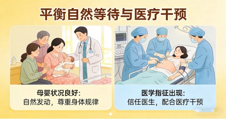4.平衡自然等待与医疗干预:在母婴状况良好的前提下,尽量让分娩自然发动,尊重身体的自然规律;但当出现明确的医学指征时,要充分信任医生的专业判断,配合医疗干预,这是医生为母婴安全做出的最优选择。