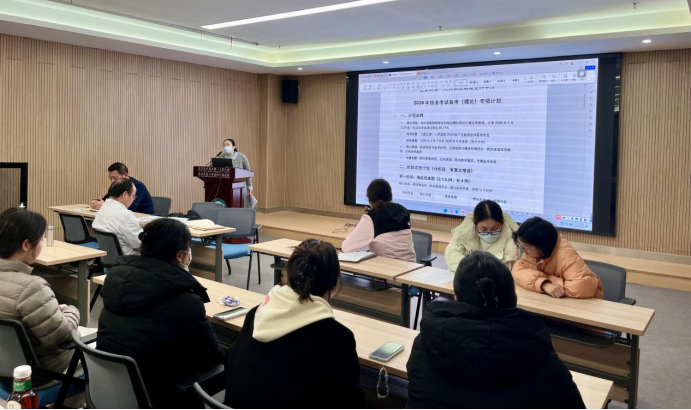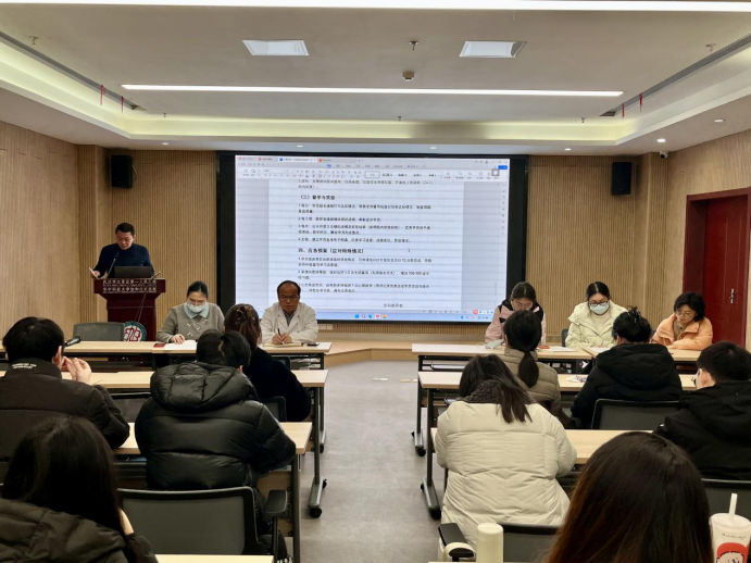会议首先由全科教研室教学主任左晶就助理全科医师规范化培训结业考试等相关考核工作进行了专项布置。她对考试政策、时间安排与考核要求作了详细解读,强调了结业考试对医师职业发展的重要意义,要求全体学员从思想上重视、在行动上落实,并表示教学管理团队将全力做好考前辅导、模拟训练及各项保障工作,助力学员以良好状态迎接考核。