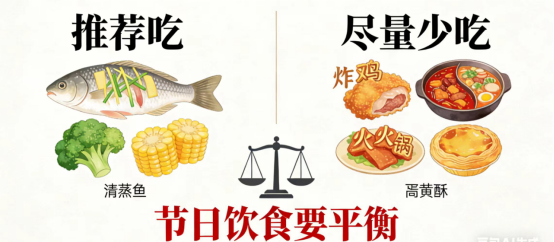 节日期间,管住嘴是护胆的关键。我们可以用“天平”来衡量饮食: