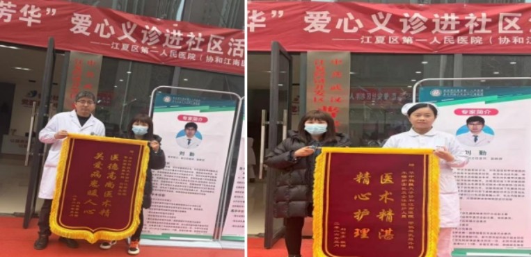 活动中曾在我院甲状腺乳腺外科住院治疗的刘女士,得知甲乳外科副主任医师刘勤教授与朱琳护士长来到社区义诊,特地赶来将一面锦旗送到他们手中,以表达对科室团队精湛医术与精心护理的诚挚感谢。这面锦旗不仅是对甲乳外科个体医护的肯定,更是对医院全体护理团队专业付出与人文关怀的赞誉。