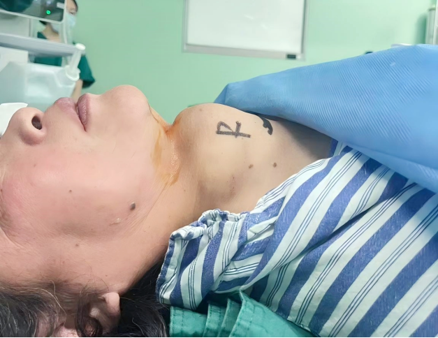 “巨大甲状腺肿瘤,气管及邻近的软组织、大血管均受严重压迫。”据我院甲乳外科副主任医师王勤甫介绍,如此巨大的肿瘤持续压迫气道,犹如一颗“定时炸弹”,随时可能导致气管塌陷、窒息,甚至危及生命,手术切除是唯一且紧迫的治疗选择。经充分沟通,李阿姨及家属选择手术切除。