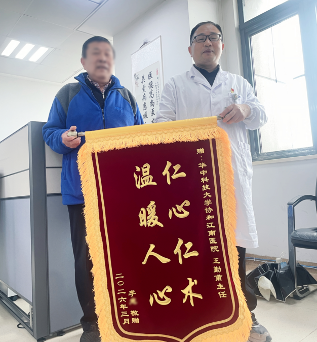 “感觉像搬走了压在脖子上的一座山,呼吸一下子敞亮了!”3月25日,在江夏区第一人民医院(协和江南医院)甲乳外科病房,即将康复出院的李阿姨(化名)轻抚颈部,深深吸了一口气。在她颈中“盘踞”八年的巨大甲状腺肿瘤被成功切除,不仅解除了其窒息风险,更让她重获畅快呼吸。临出院前,李阿姨特意将一面印有“仁心仁术 温暖人心”的锦旗送到医护人员手中···